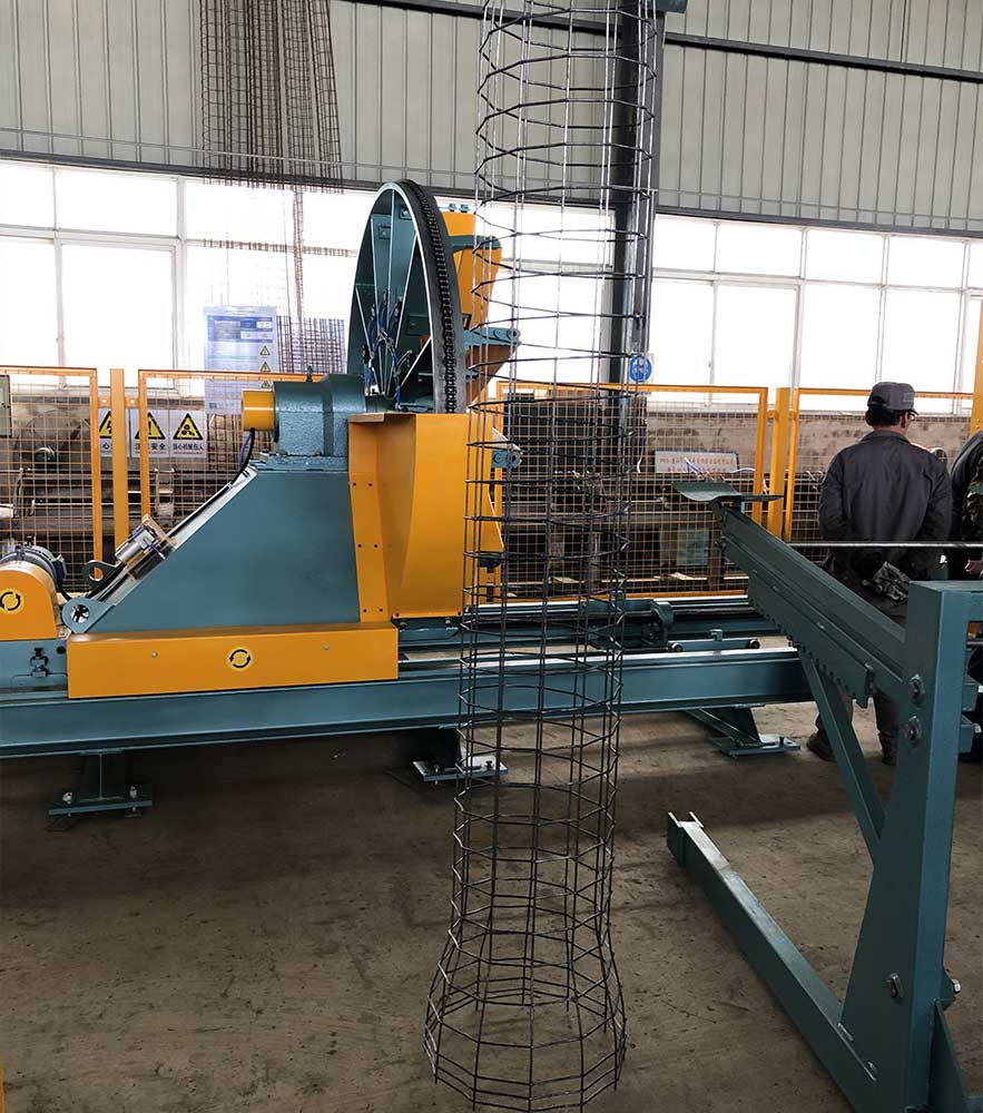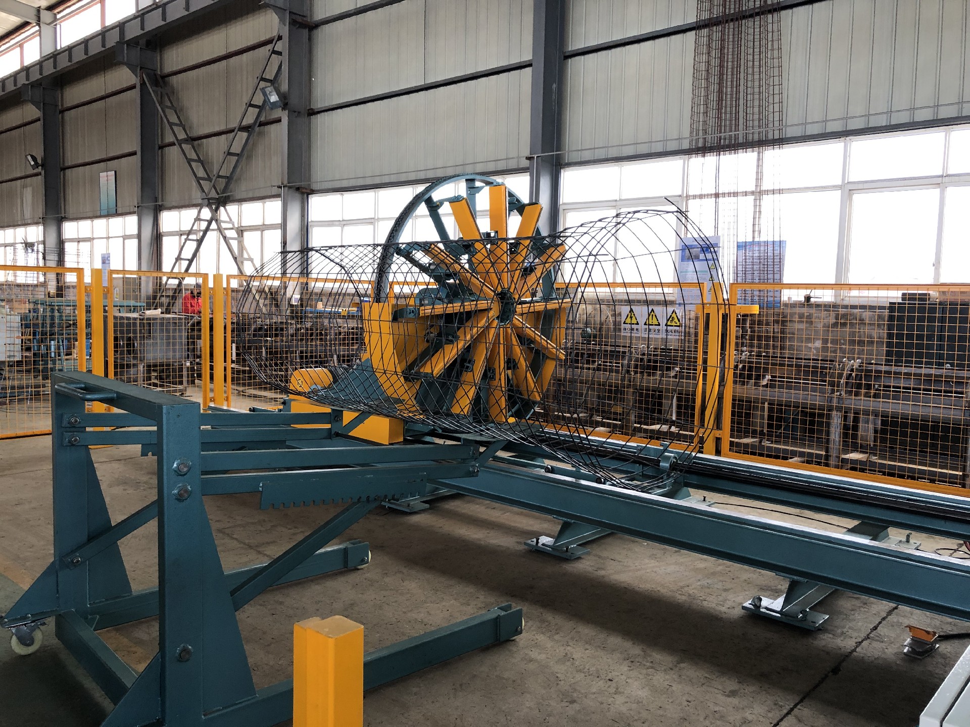 該機(jī)型為出口型的牽拉式排水管鋼筋骨架滾焊機(jī),可生產(chǎn)Φ300-Φ1200mm鋼筋籠,其主要特點是焊接牢固,焊接速度快,鋼筋不扭曲等。