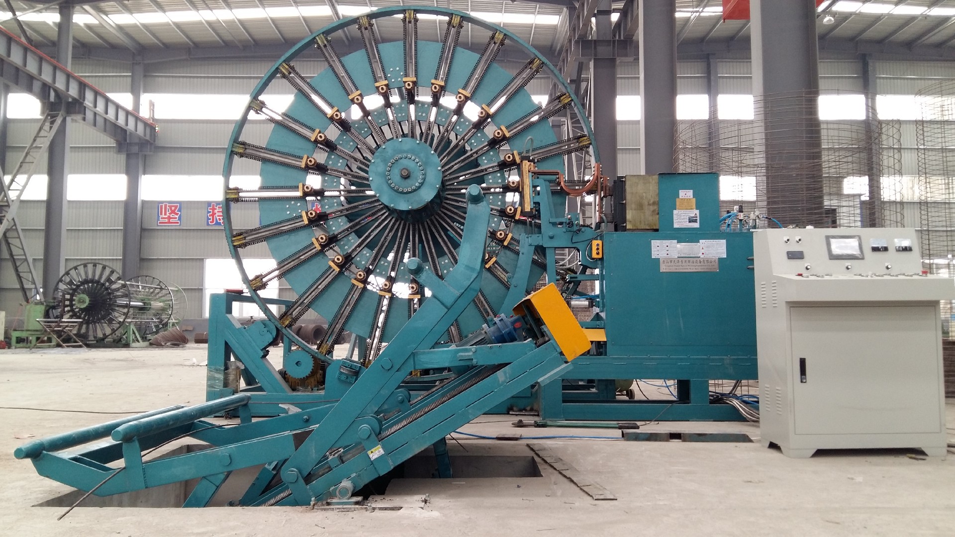 我公司生產(chǎn)的排水管滾焊機的可翻轉(zhuǎn)電動托籠架,因其方便,減輕勞動強度等優(yōu)勢已在國內(nèi)外用戶中廣泛使用。但焊完的鋼筋籠卸到地面的問題,還未能解決,還需借助人力操作或起重設(shè)備(大型鋼筋籠時)完成卸籠,人力卸籠時勞動強度很大,且存在一定的危險性,而我們研制的排水管滾焊機的可翻轉(zhuǎn)電動托籠可以實現(xiàn)鋼筋籠下降并自動翻滾至地面,大大減輕工人的勞動強度,而且有效,不會損傷鋼筋籠。